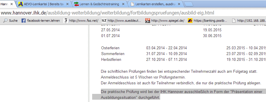 - Dokumentation der Probleme und der gravierenden Fehlleistungen im Zusammenhang mit den Ausbildereignungsprüfungen auf meiner eigenen Webseite
